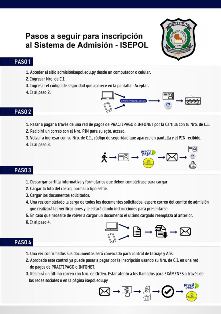La preinscripción se realiza a través de: www.admisionisepol.edu.py